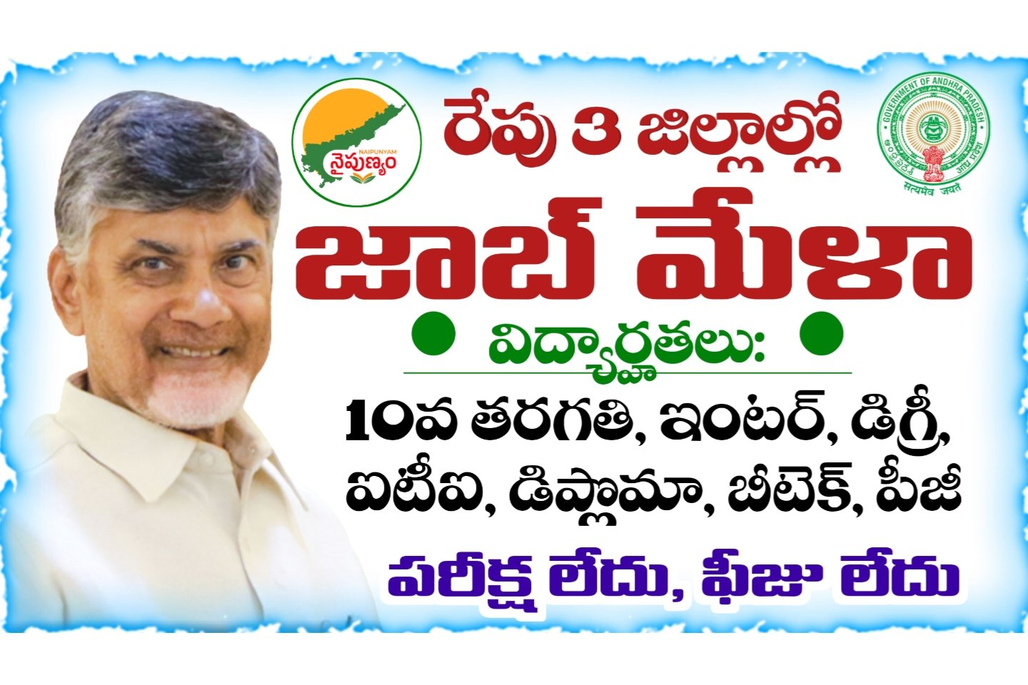 Job Mela: రేపు మూడు జిల్లాల్లో జాబ్ మేళా నిర్వహణ.. డైరెక్ట్ ఇంటర్వ్యూ ద్వారా ఉద్యోగాలు భర్తీ