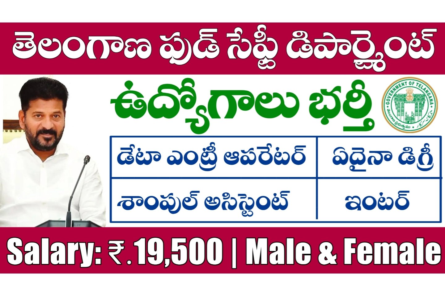 Telangana Govt Jobs: ఇంటర్, ఏదైనా డిగ్రీ అర్హతలతో తెలంగాణ ఫుడ్ సేఫ్టీ డిపార్ట్మెంట్ లో ఉద్యోగాల భర్తీకి నోటిఫికేషన్ విడుదల