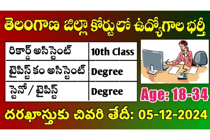 తెలంగాణ జిల్లా కోర్టులో రికార్డ్ అసిస్టెంట్, టైపిస్ట్ ఉద్యోగాల భర్తీకి నోటిఫికేషన్ విడుదల | Telangana District Court Jobs